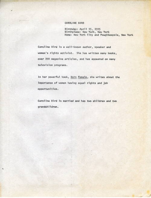 Caroline Bird supersisters biography draft