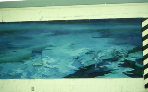 This is Dushanko-Dobek’s work, “Camouflage II.” This work is an acrylic painting on paper and a companion to Camouflage I, both of which were the background for a series of freestanding assemblages aka installations also titled “La Vida es un Sueno”. The found and constructed objects had a decidedly surreal dreamlike presence as you wandered through the room.