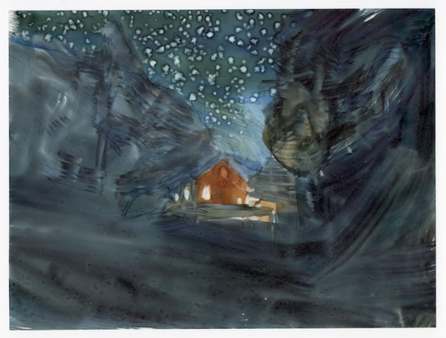 This work is a part of the series Tender Archive (2023-2024) created by the artist after reflecting on how the ubiquity of phone cameras often results in important moments getting lost in a sea of thumbnails. Ink on mylar, 12" x 9".