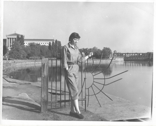 Phyllis Krim in front of the Philadelphia Museum of Art
