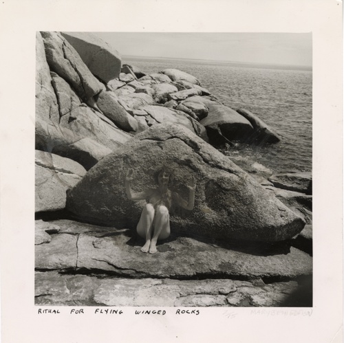 In CopyrightThis is Mary Beth Edelson’s photo, Ritual for Flying Under Winged Rocks.