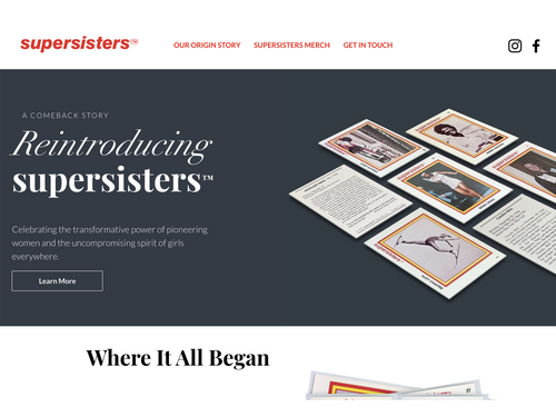 The supersisters™ homepage highlights the current efforts to relaunch the trading card series for a new generation.