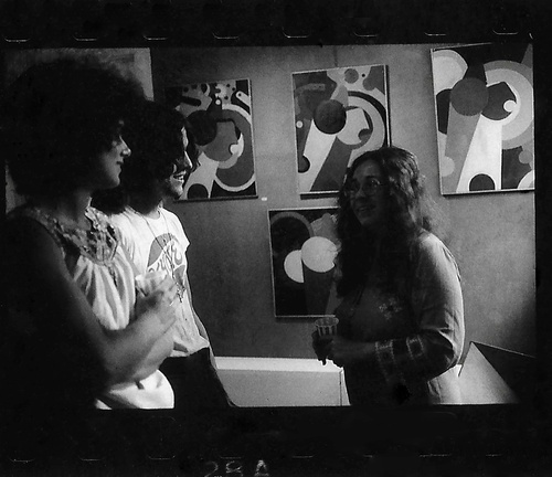This black and white photograph documents Phyllis Krim’s 1972 exhibition “Cycles” at Mari Galleries in Woodstock, NY. Photographer unknown.