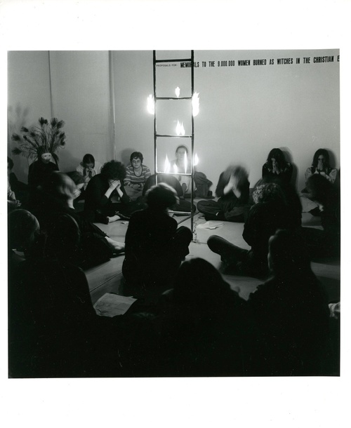 This is a photo from Mary Beth Edelson’s exhibition, Memorials to the 9,000,000 Women Burned as Witches in the Christian Era.