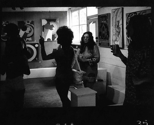This black and white photograph documents Phyllis Krim’s 1972 exhibition “Cycles” at Mari Galleries in Woodstock, NY. Photographer unknown.