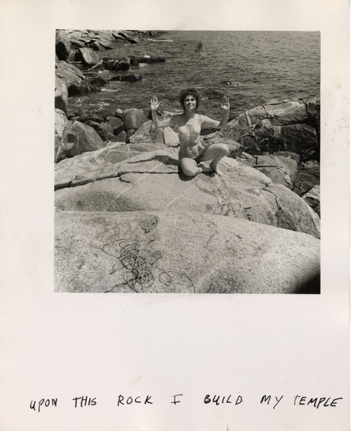 This is Mary Beth Edelson’s photo, Upon This Rock I Build My Temple.